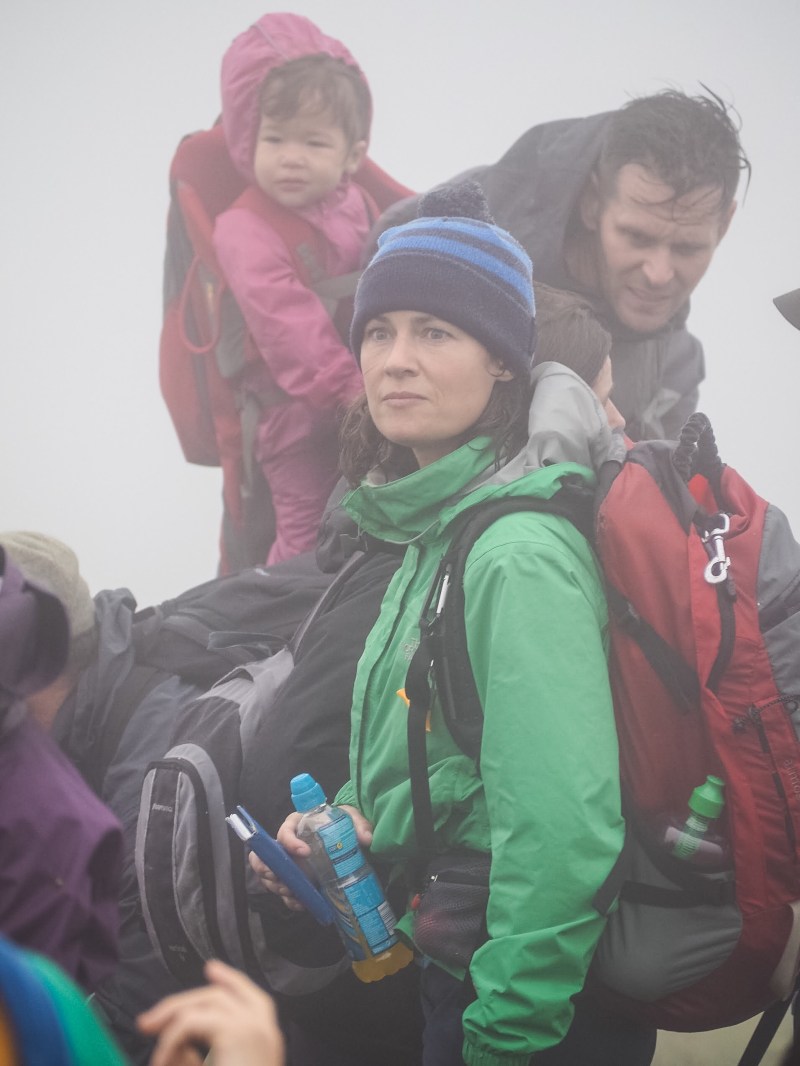 We met a group descending who said it was another 45 minutes to the top but that you couldn’t see a thing and it was extremely windy up there. The children were soaked to their skins and with zero view, anywhere, pushing onto the top in dangerous conditions seemed somewhat reckless.