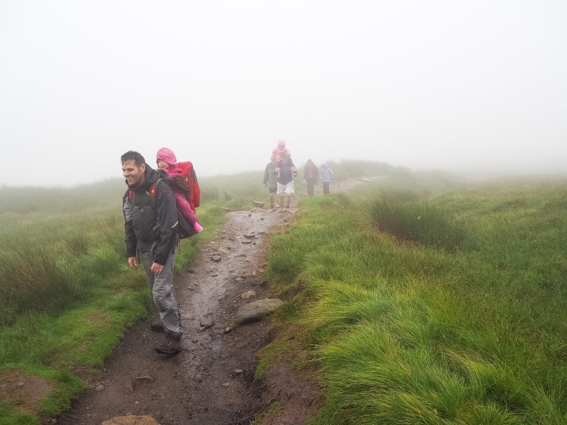 However, as we sat down the rain and mist descended and we had a rather miserable 20 minutes trying to eat some lunch in the thundering rain while trying to keep the children warm. We thought there were about another 1-2 hours to go and set off again into the mist.