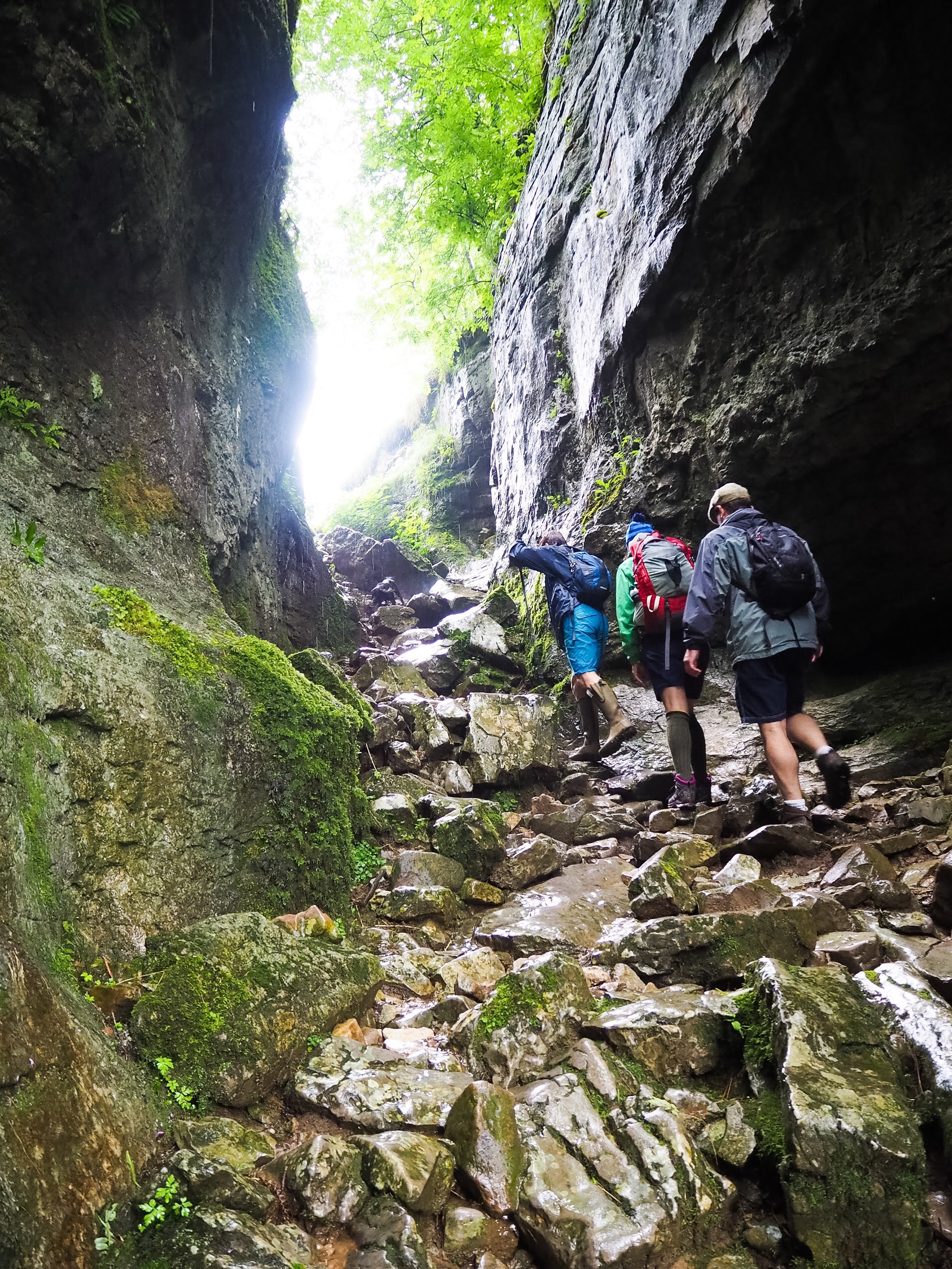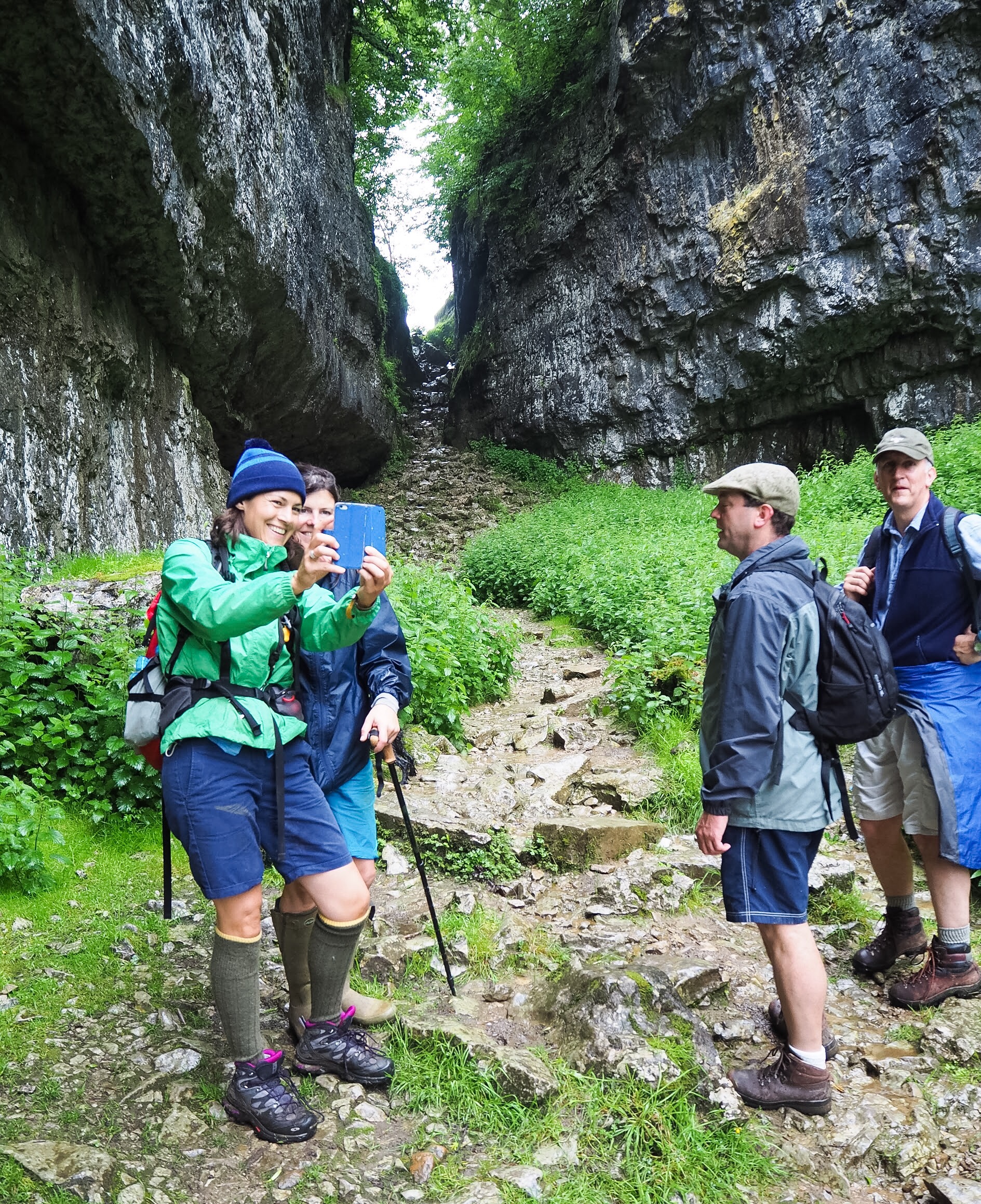 With the older children setting a furious pace at the front, the Elliott brothers and Holly and I were soon running to catch up with them, pausing for some quick pictures as we climbed through the dramatic limestone gorge of Trow Gill. It’s a wonderful part of the walk and there is a short scramble at the end, at which point you get the first views of Ingleborough itself. Quite beautiful (the gorge, not perhaps the anorak-clad mummies…what was i thinking with those socks?!)