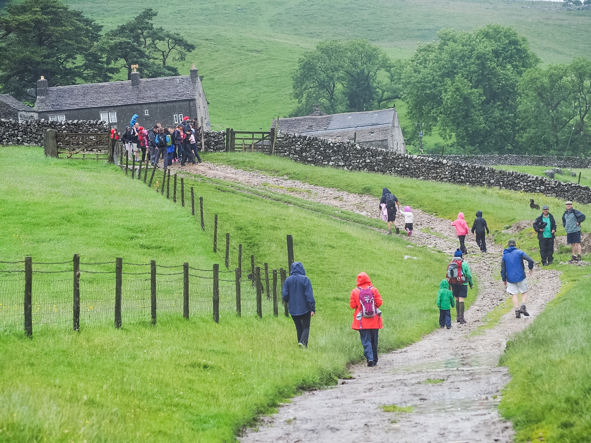 There are a number of different ways to climb Ingleborough but the route we had been recommended took in the best points of interest – Ingleborough Cave, Trow Gill and Gaping Gill. Our start point was Clapham village, just about an hour away over the dales and at 9am on a cold, windy and wet morning we met up with everyone.